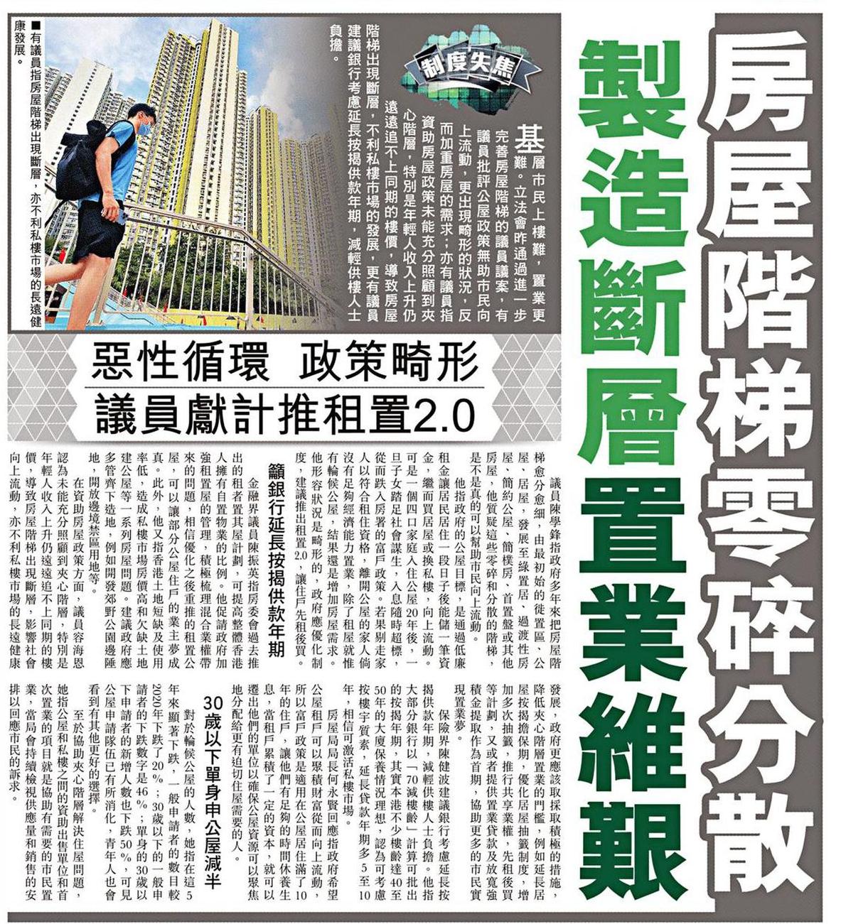 房屋階梯零碎分散 製造斷層置業維艱 惡性循環 政策畸形 議員獻計推租置2.0