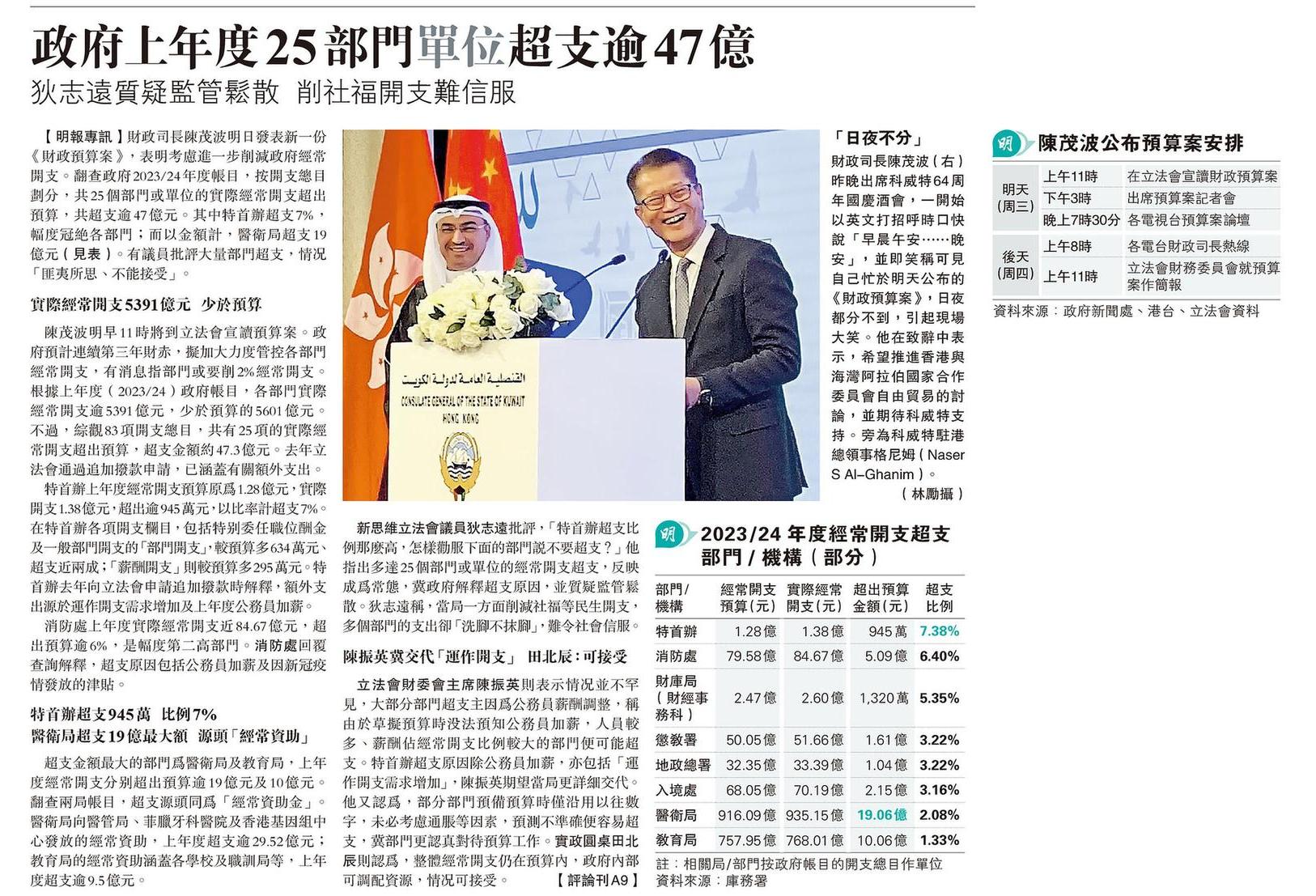 政府上年度25部門單位超支逾47億 狄志遠質疑監管鬆散 削社福開支難信服