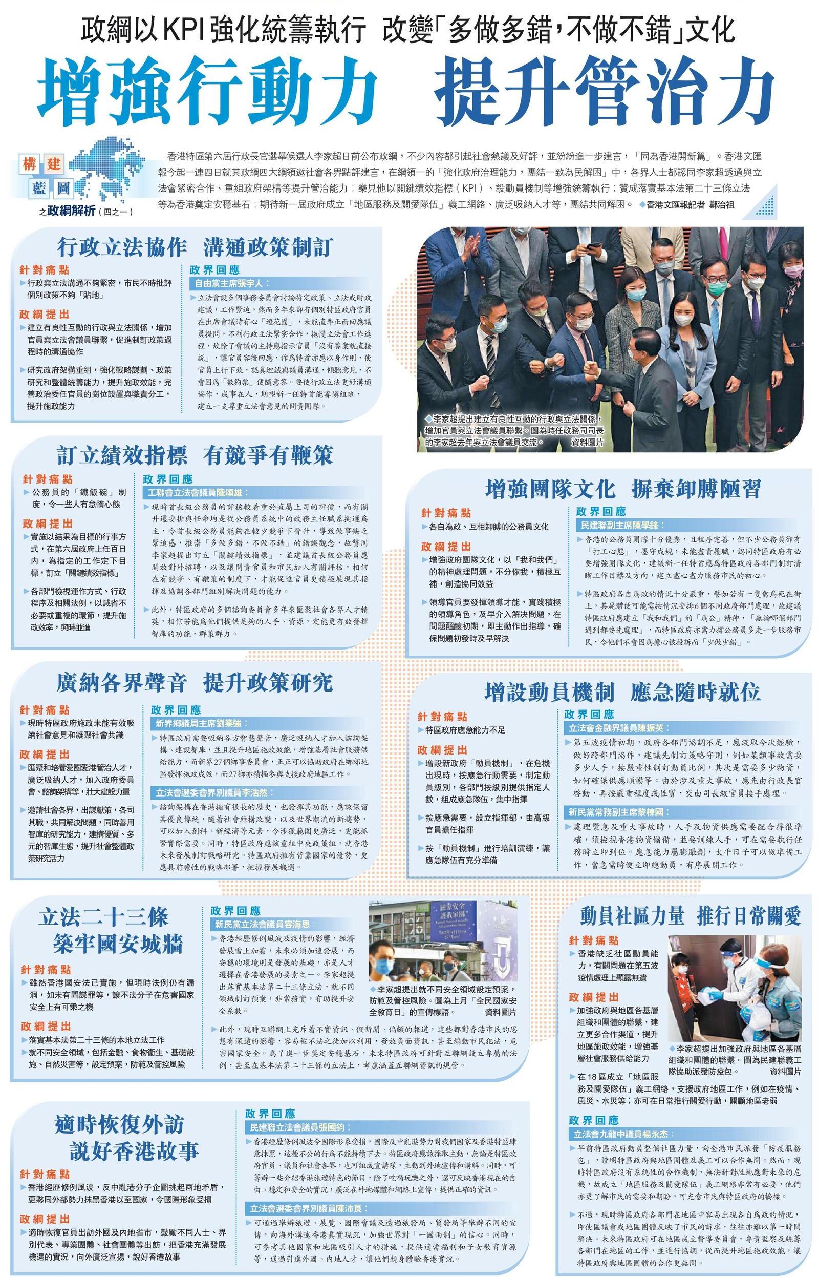 政綱以KPI強化統籌執行 改變「多做多錯,不做不錯」文化 增強行動力 提升管治力