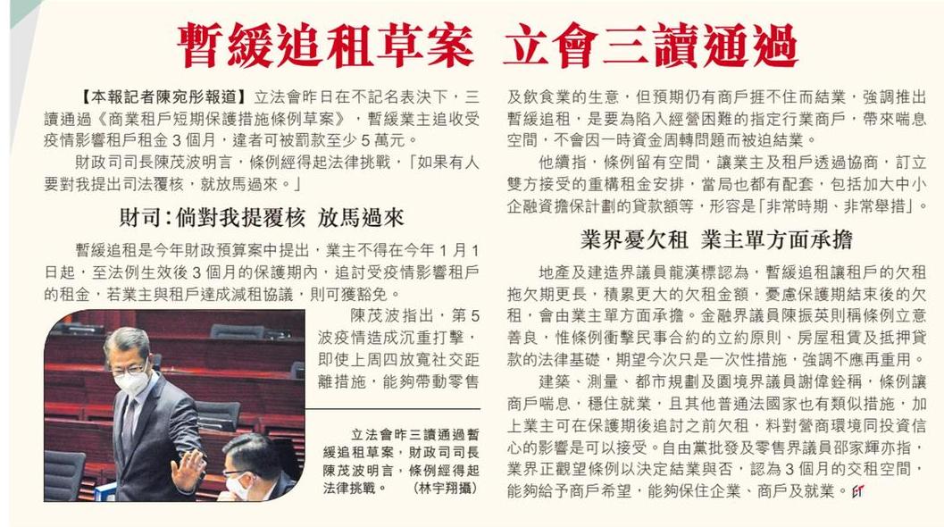 三讀通過禁追租 被斥毀私產制度 議員轟政府卸責業主 促立法可一不可再