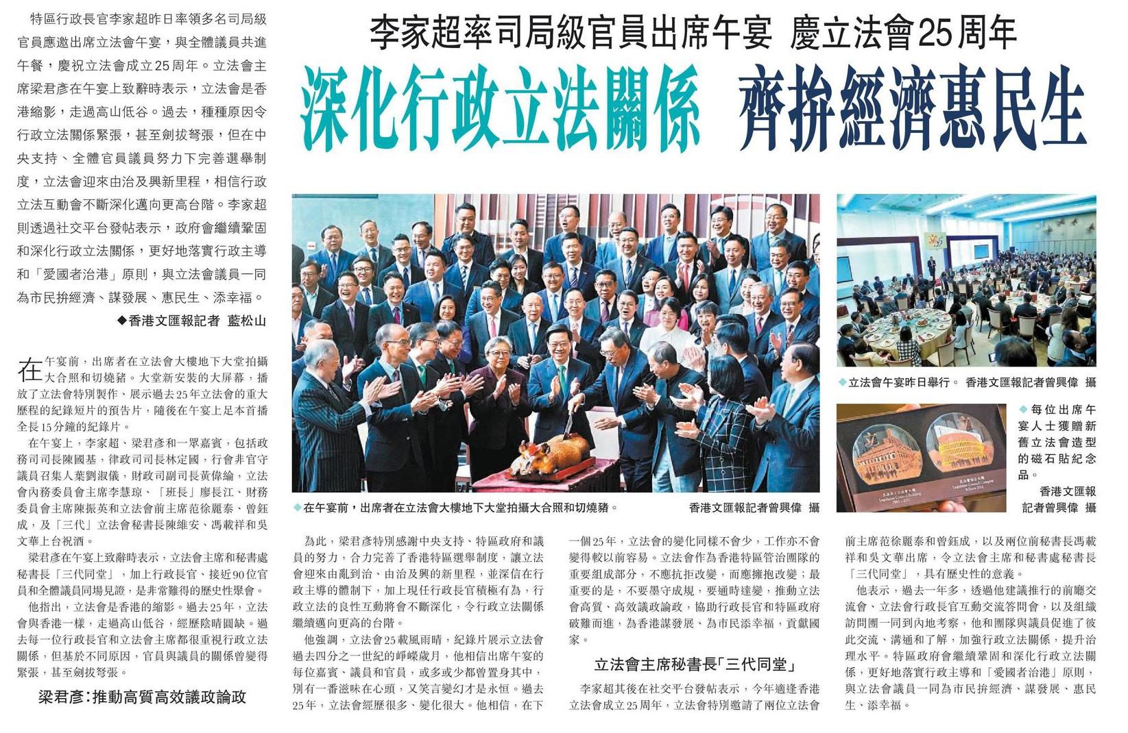李家超率司局級官員出席午宴 慶立法會25周年 深化行政立法關係 齊拚經濟惠民生