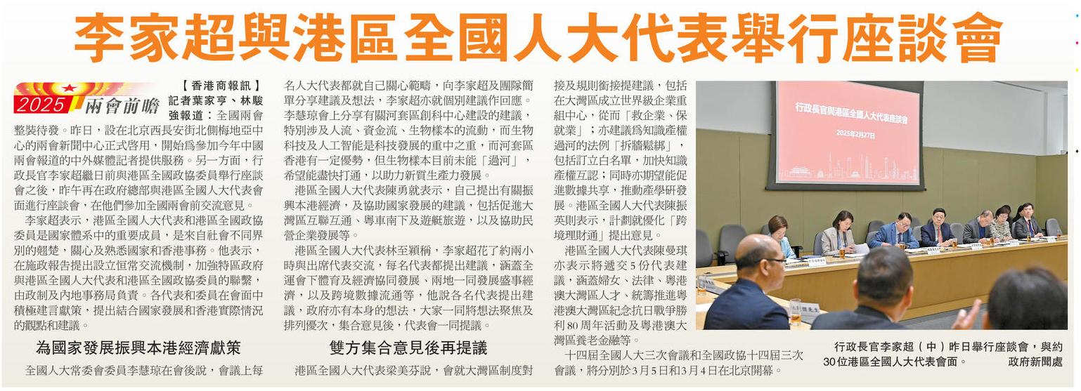 李家超與港區全國人大代表舉行座談會
