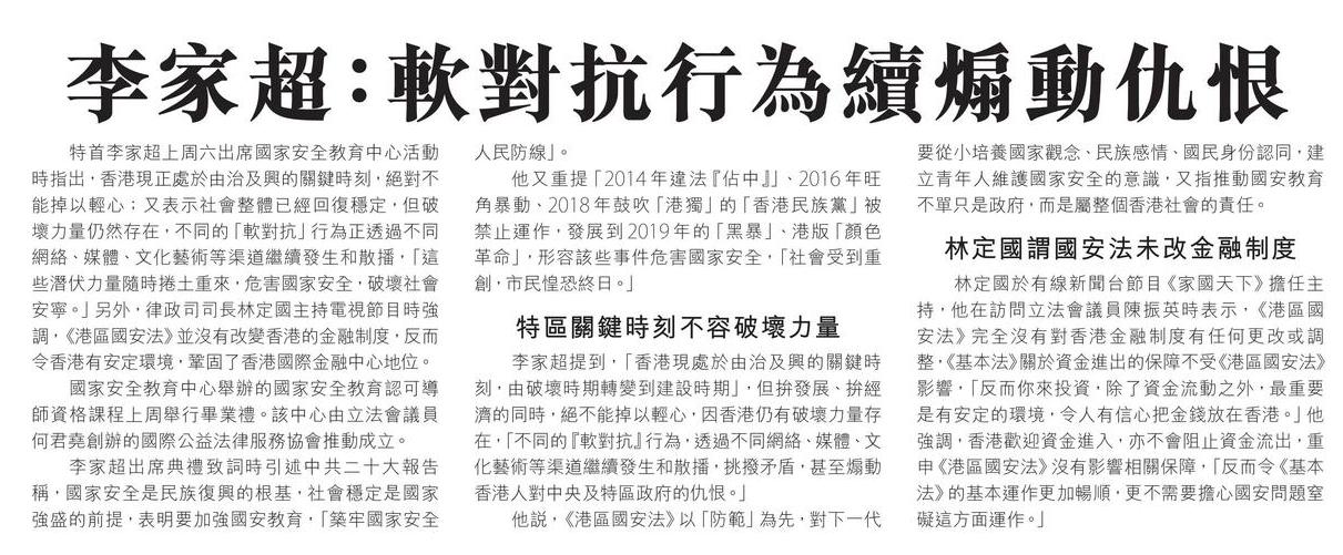 李家超:軟對抗行為續煽動仇恨