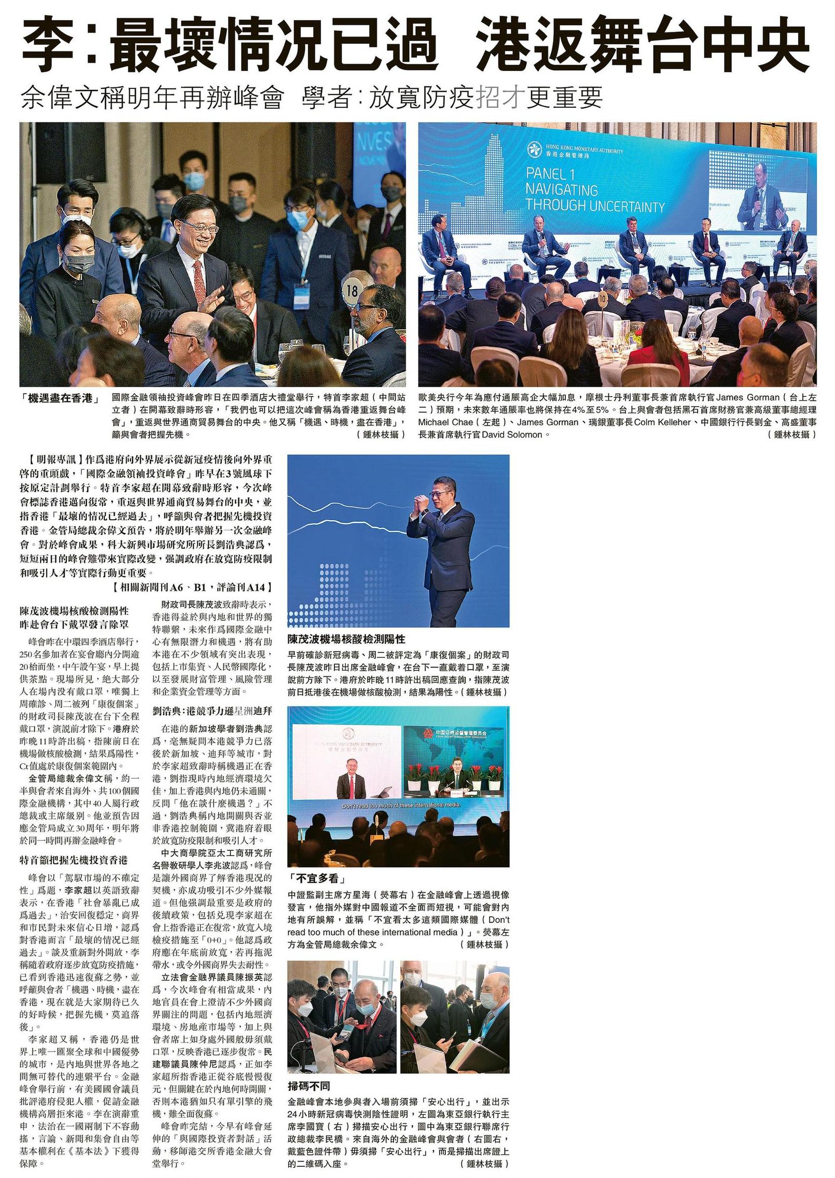 李:最壞情况已過 港返舞台中央 余偉文稱明年再辦峰會 學者:放寬防疫招才更重要