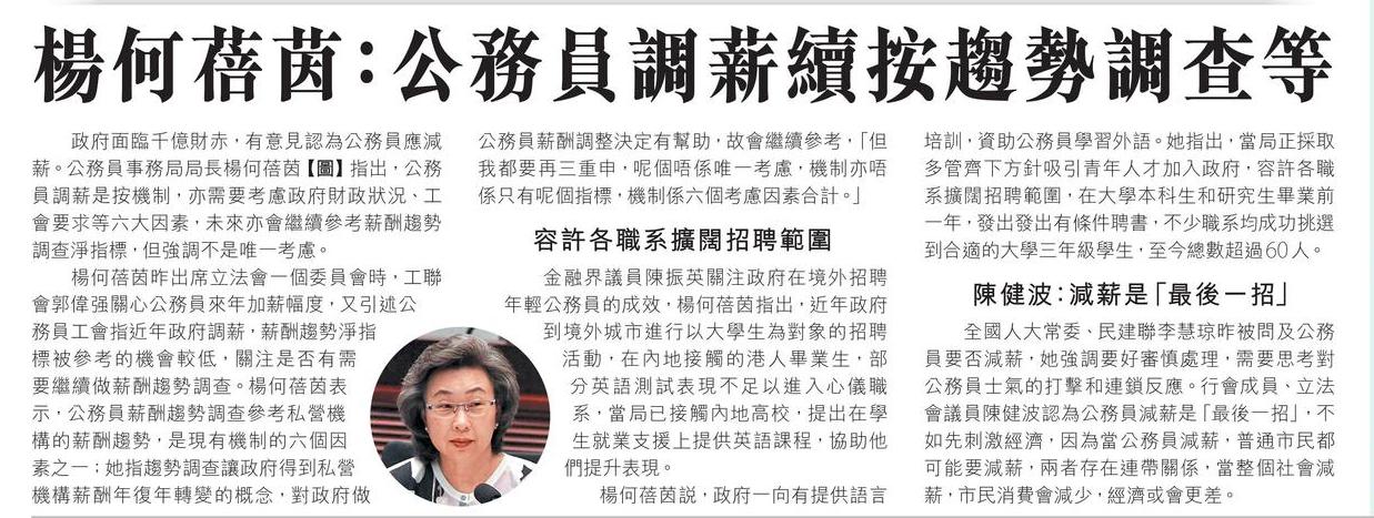 楊何蓓茵:公務員調薪續按趨勢調查等