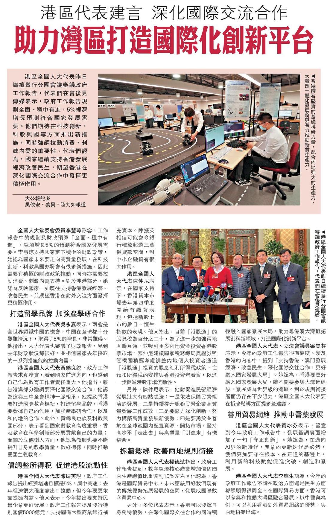 港區代表建言 深化國際交流合作 助力灣區打造國際化創新平台