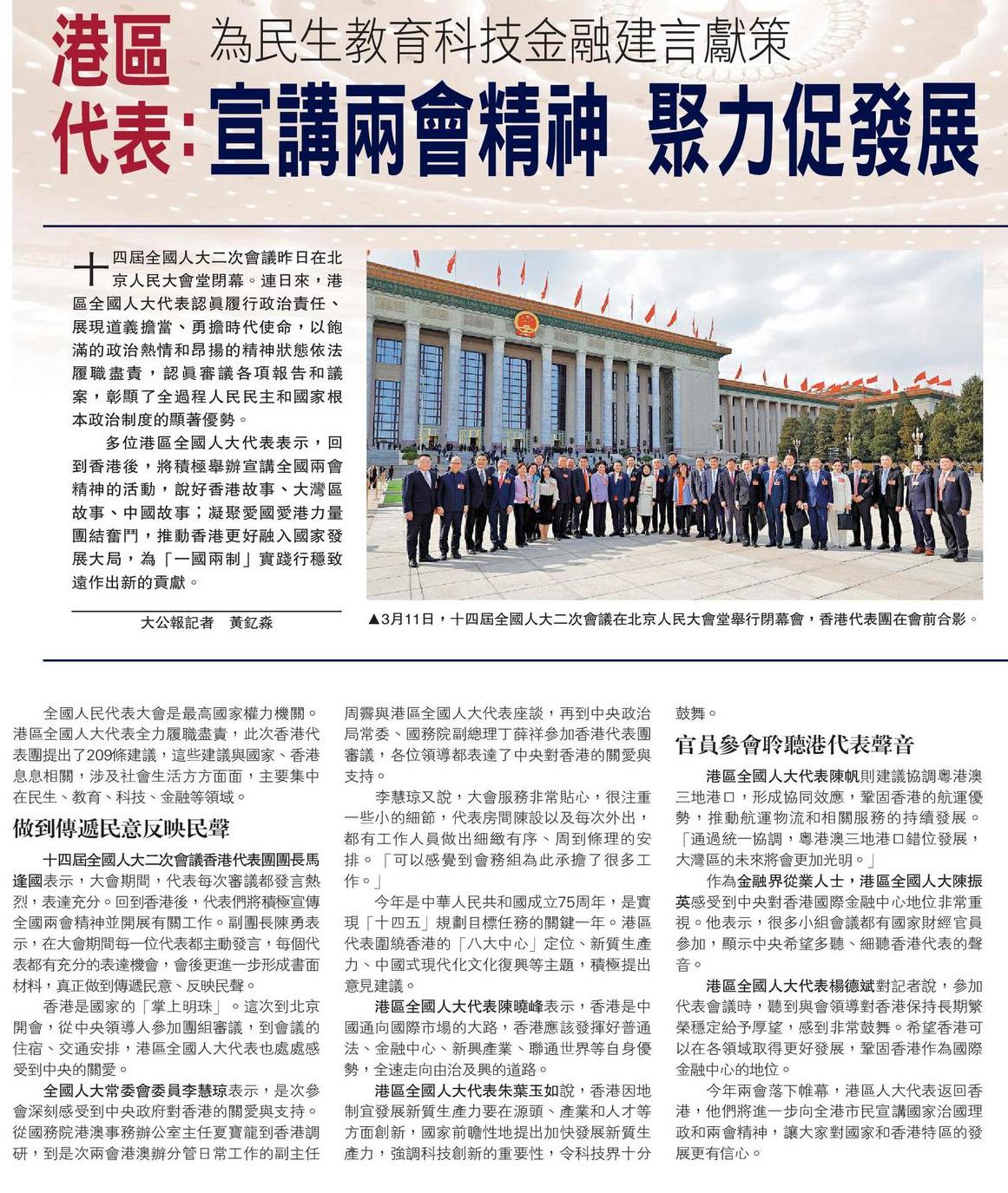 為民生教育科技金融建言獻策 港區代表:宣講兩會精神 聚力促發展