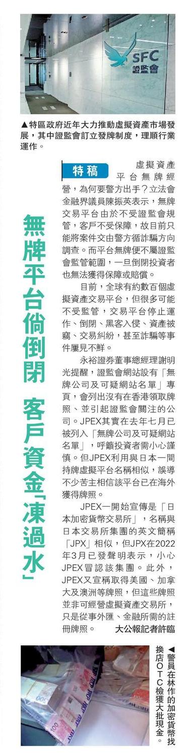 無牌平台倘倒閉 客戶資金「凍過水」