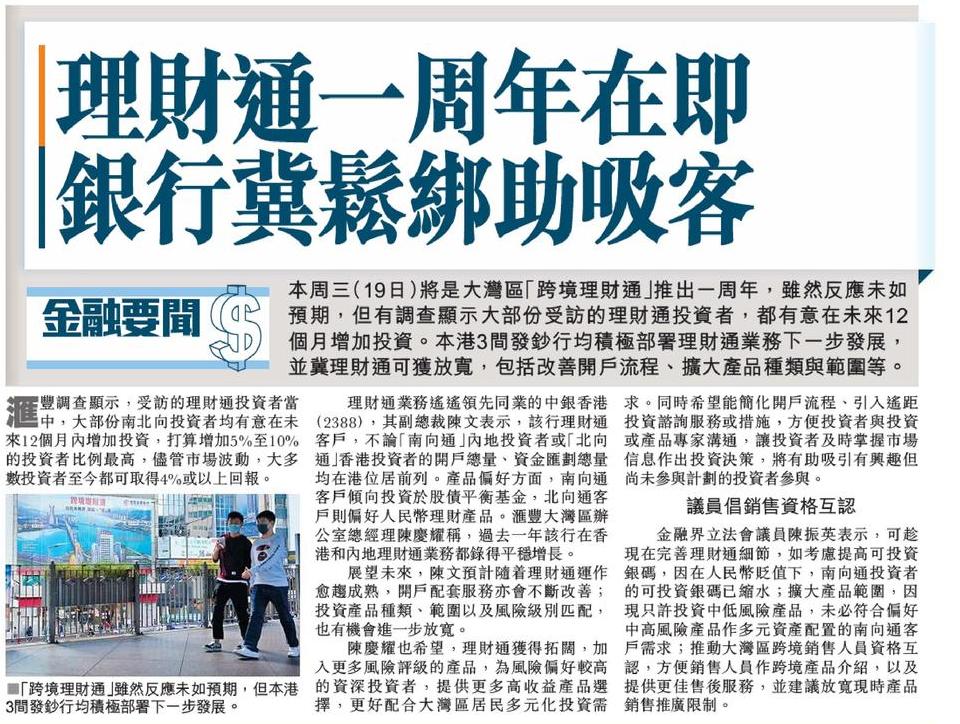 理財通首年淡靜 業界促放寬規限