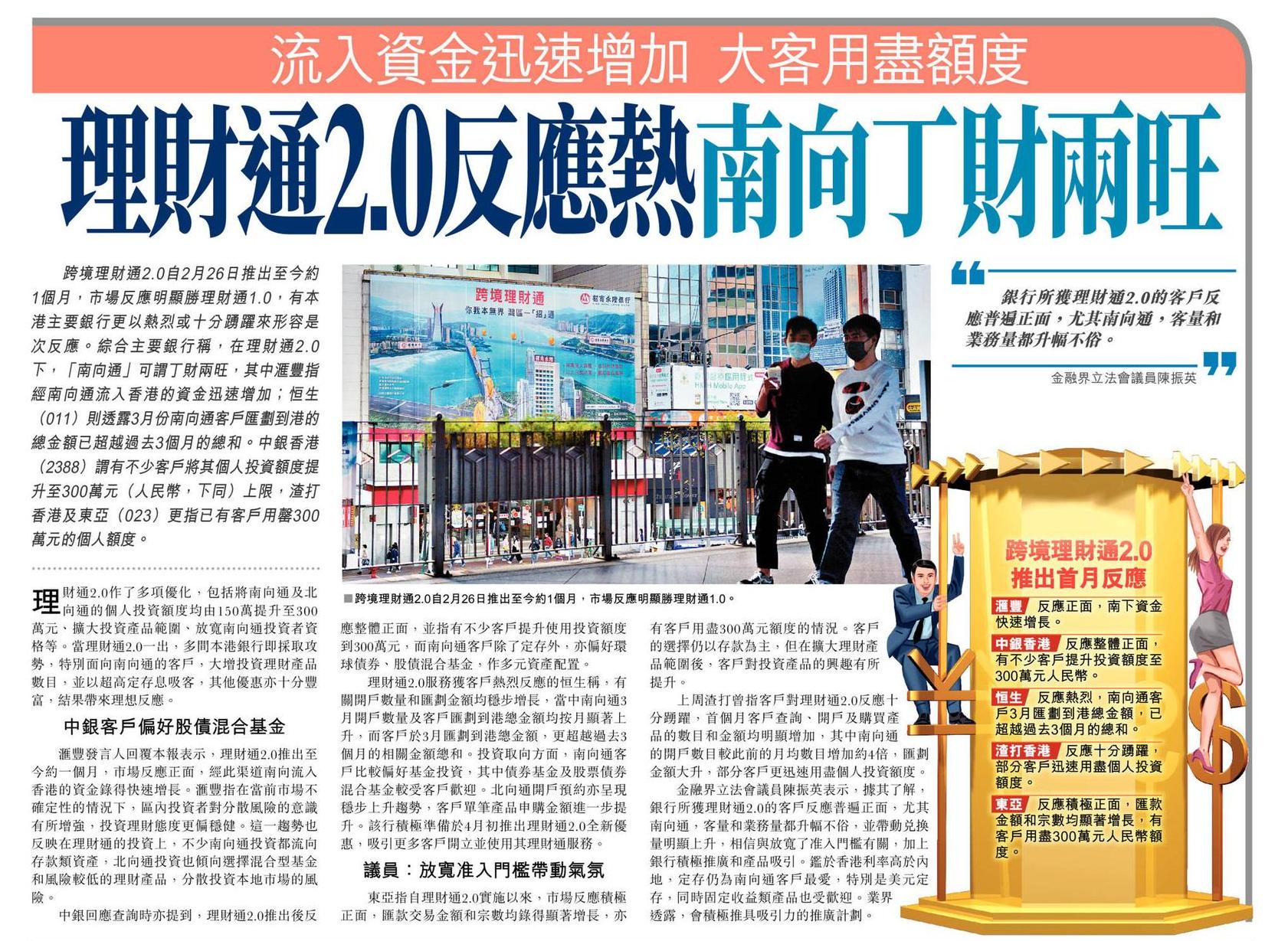 理財通2.0反應熱南向丁財兩旺 流入資金迅速增加 大客用盡額度
