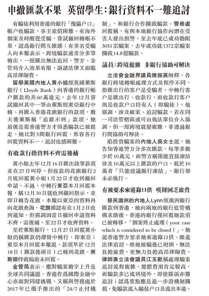 申撤匯款不果 英留學生:銀行資料不一難追討