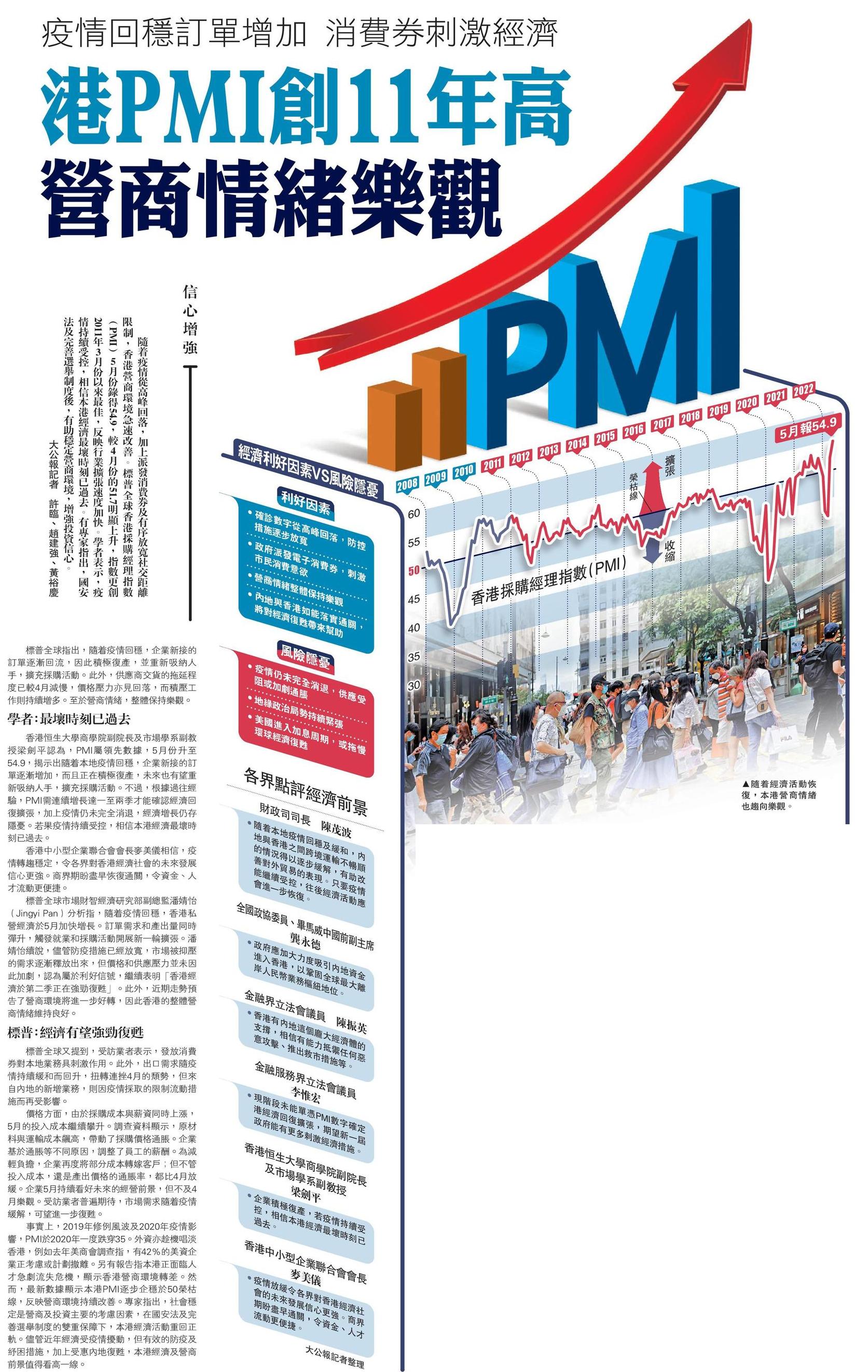 疫情回穩訂單增加 消費券刺激經濟 港PMI創11年高 營商情緒樂觀