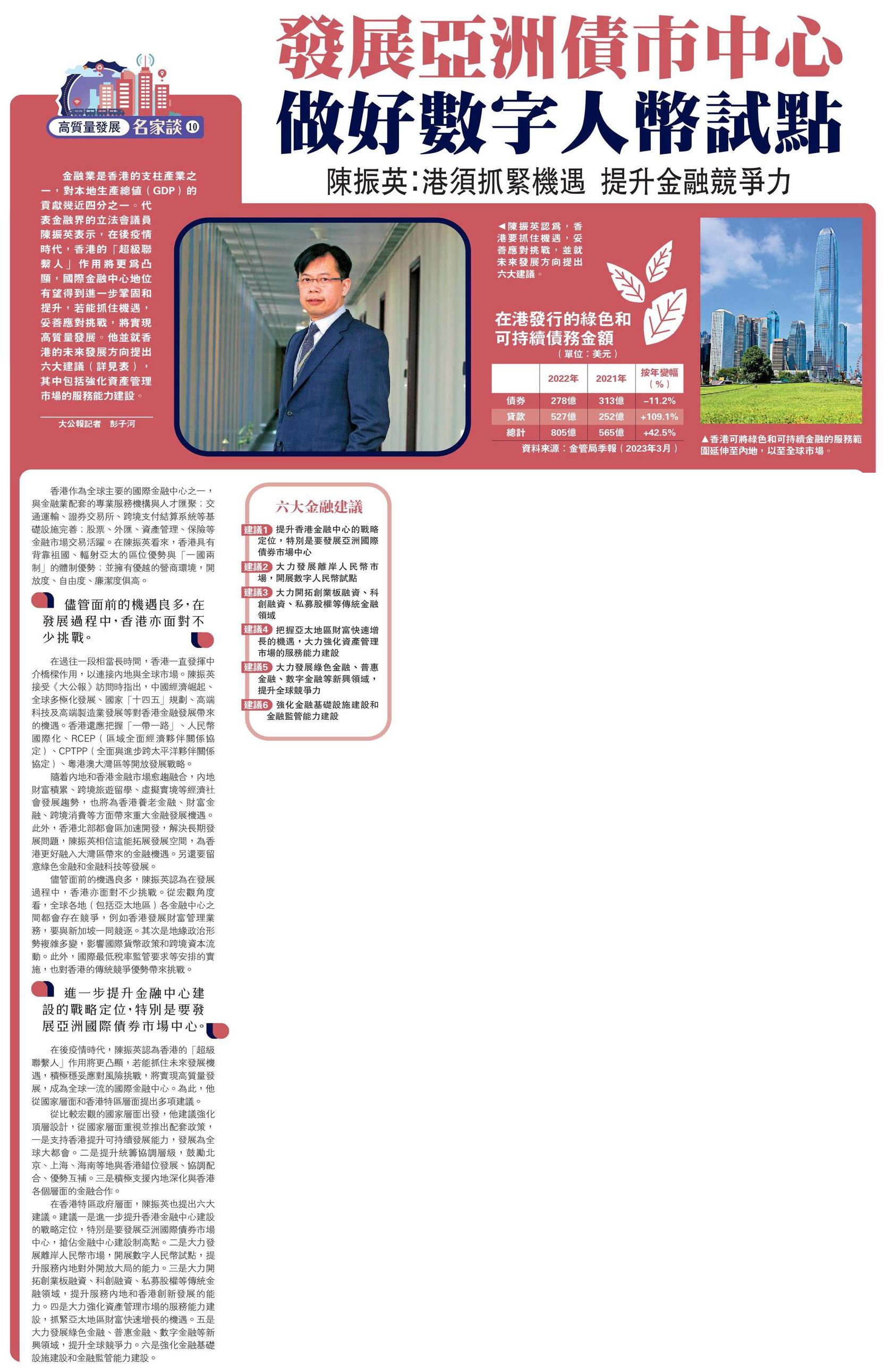 發展亞洲債市中心 做好數字人幣試點 陳振英:港須抓緊機遇 提升金融競爭力