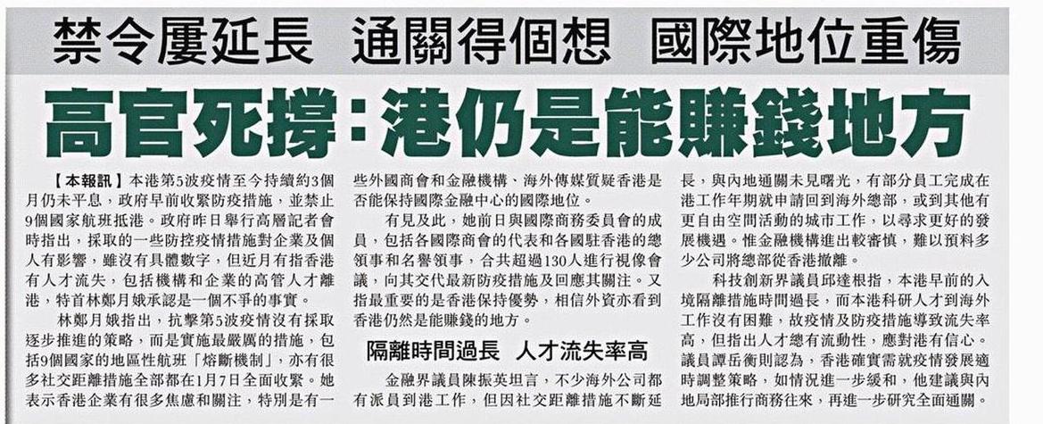 禁令屢延長 通關得個想 國際地位重傷 高官死撐:港仍是能賺錢地方