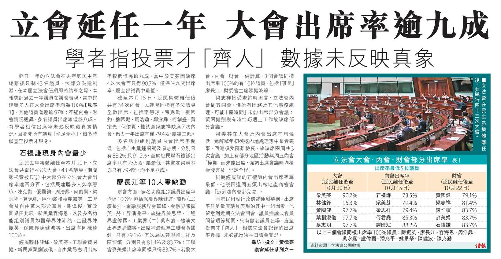 立會延任一年 大會出席率逾九成
