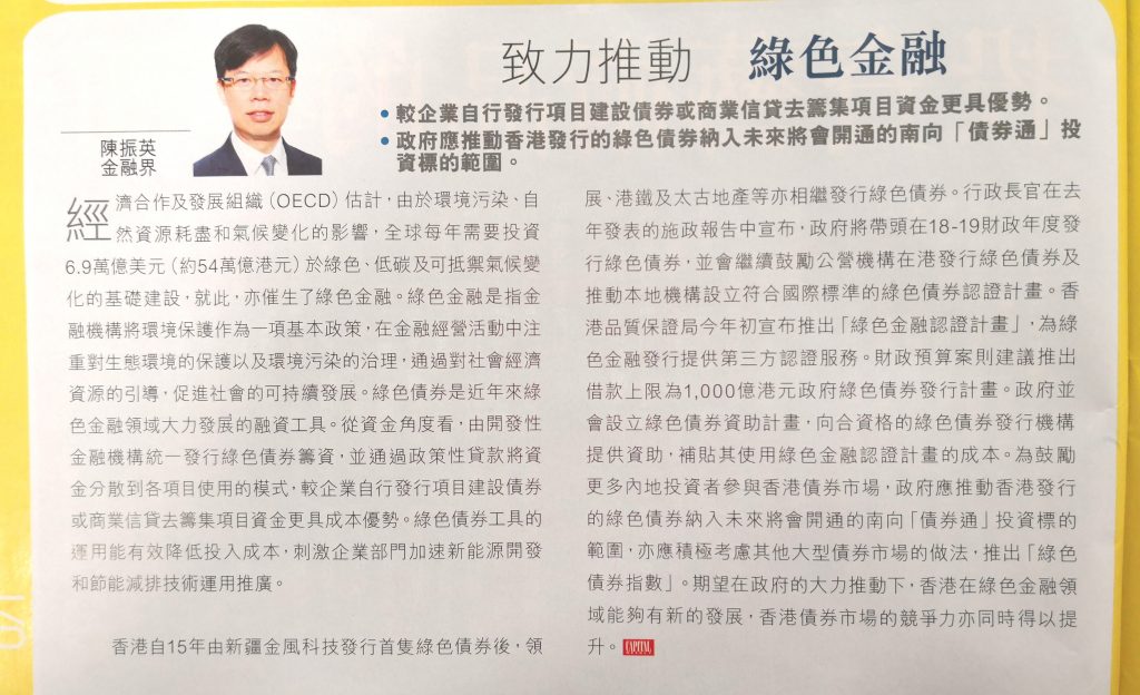 立會珠璣 – 致力推動 綠色金融