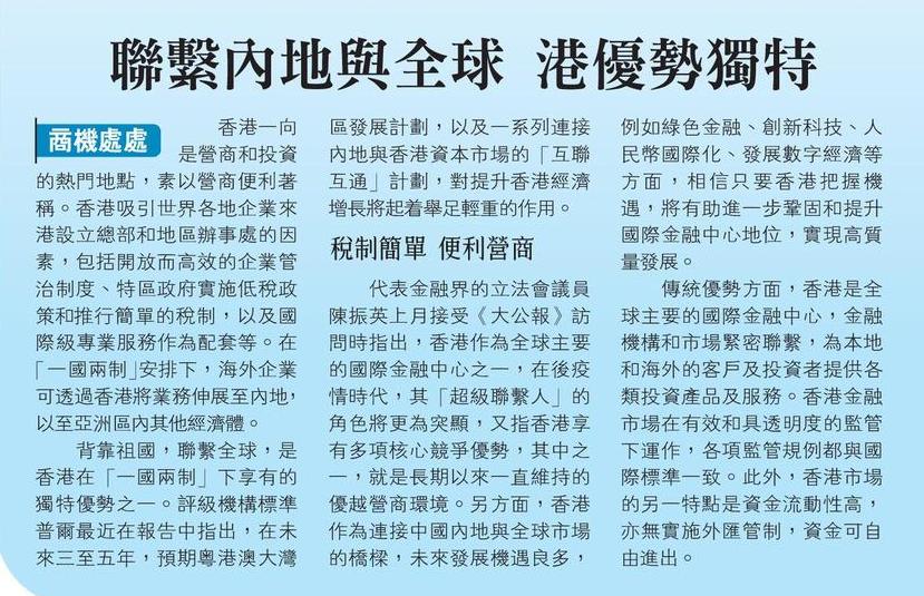 聯繫內地與全球 港優勢獨特
