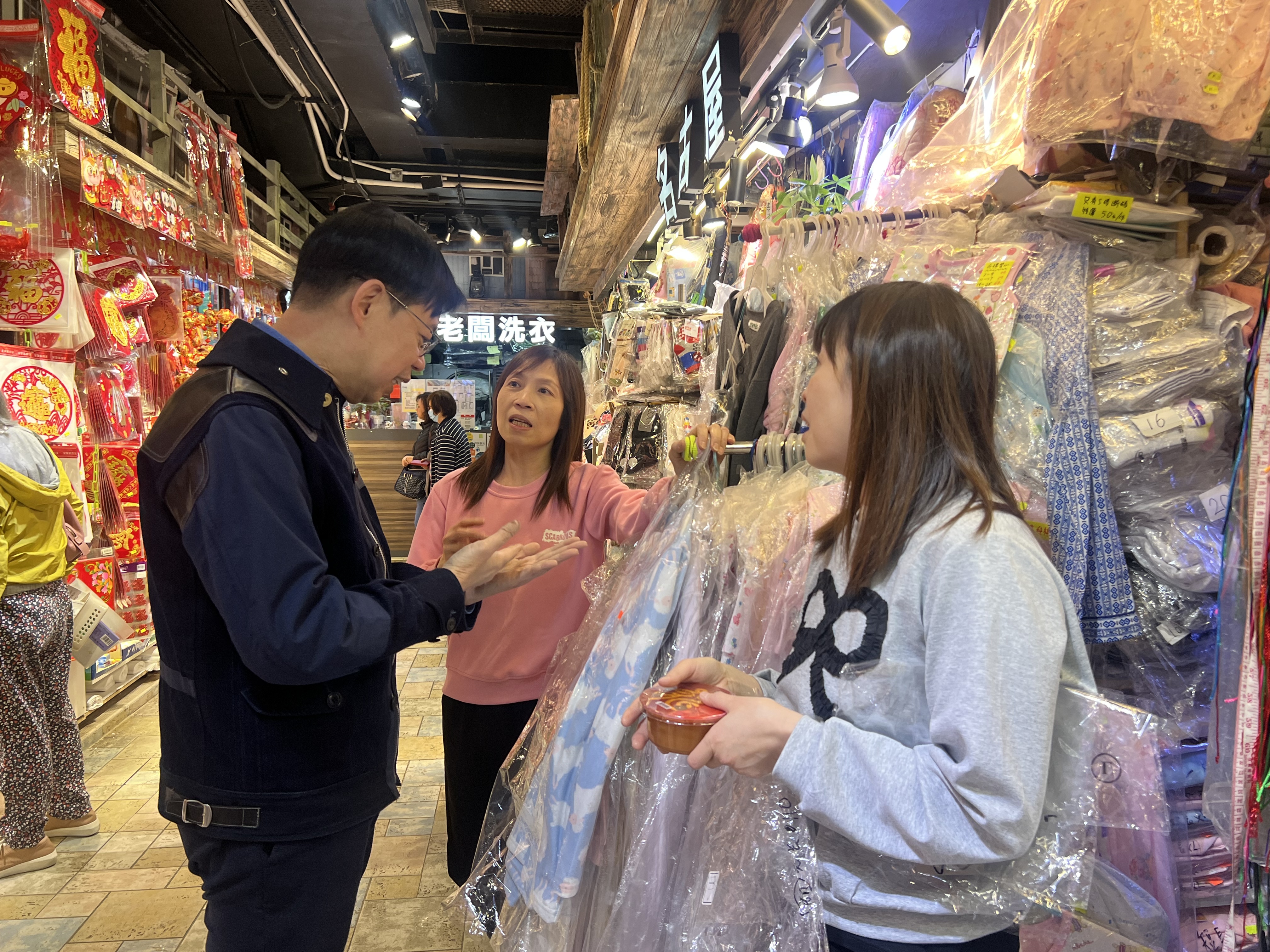 與陳穎欣議員一同到青衣市場聆聽當地商戶及居民對財政預算案的意見和需求