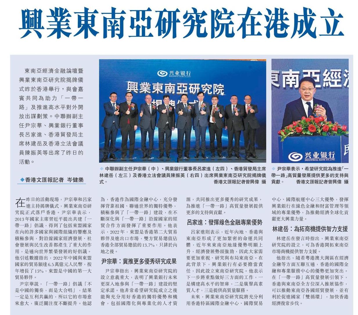 興業東南亞研究院在港成立