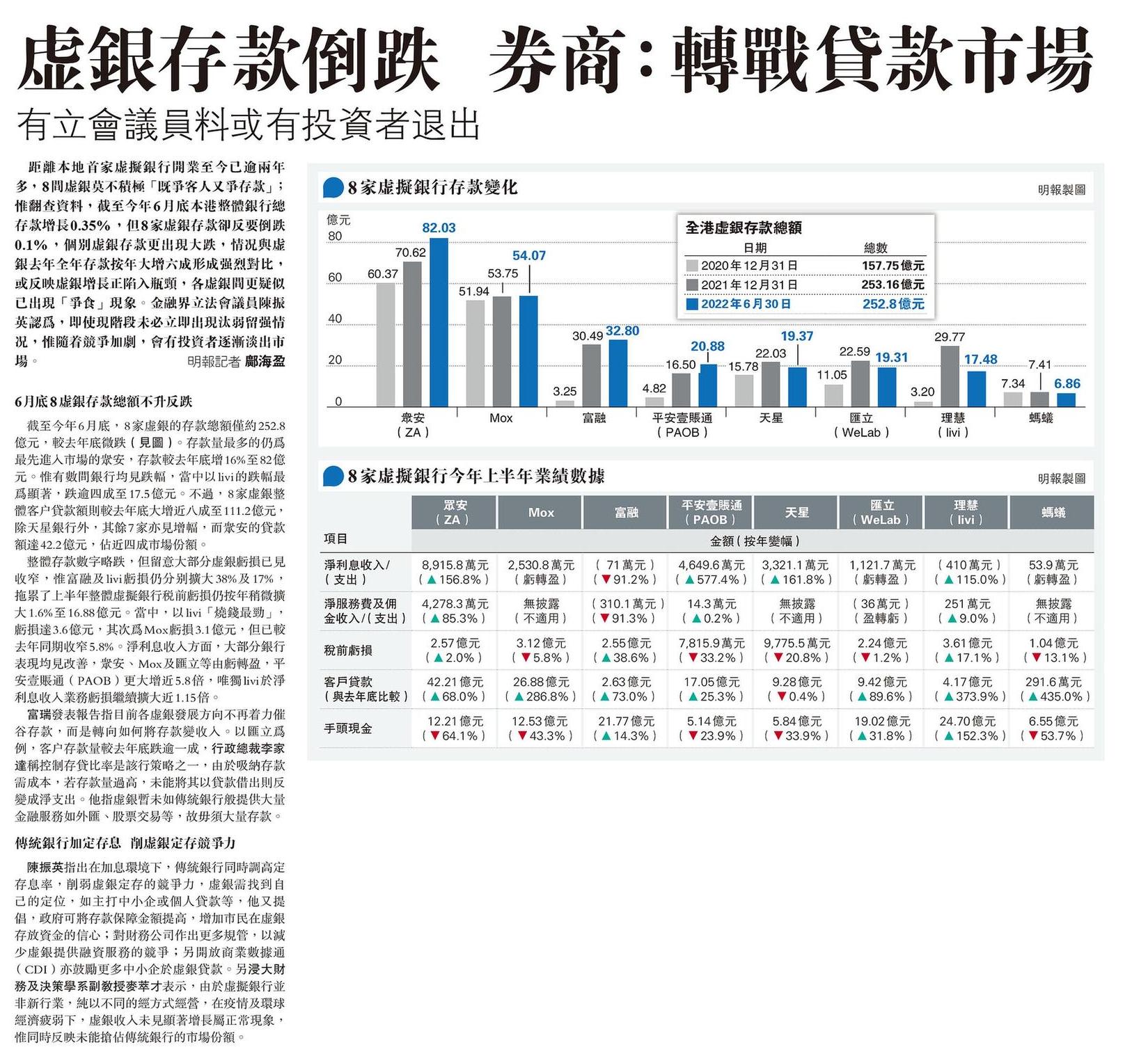 虛銀存款倒跌 券商:轉戰貸款市場 有立會議員料或有投資者退出