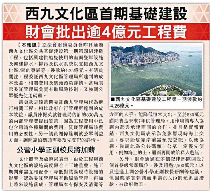 西九文化區首期基礎建設 財會批出逾4億元工程費