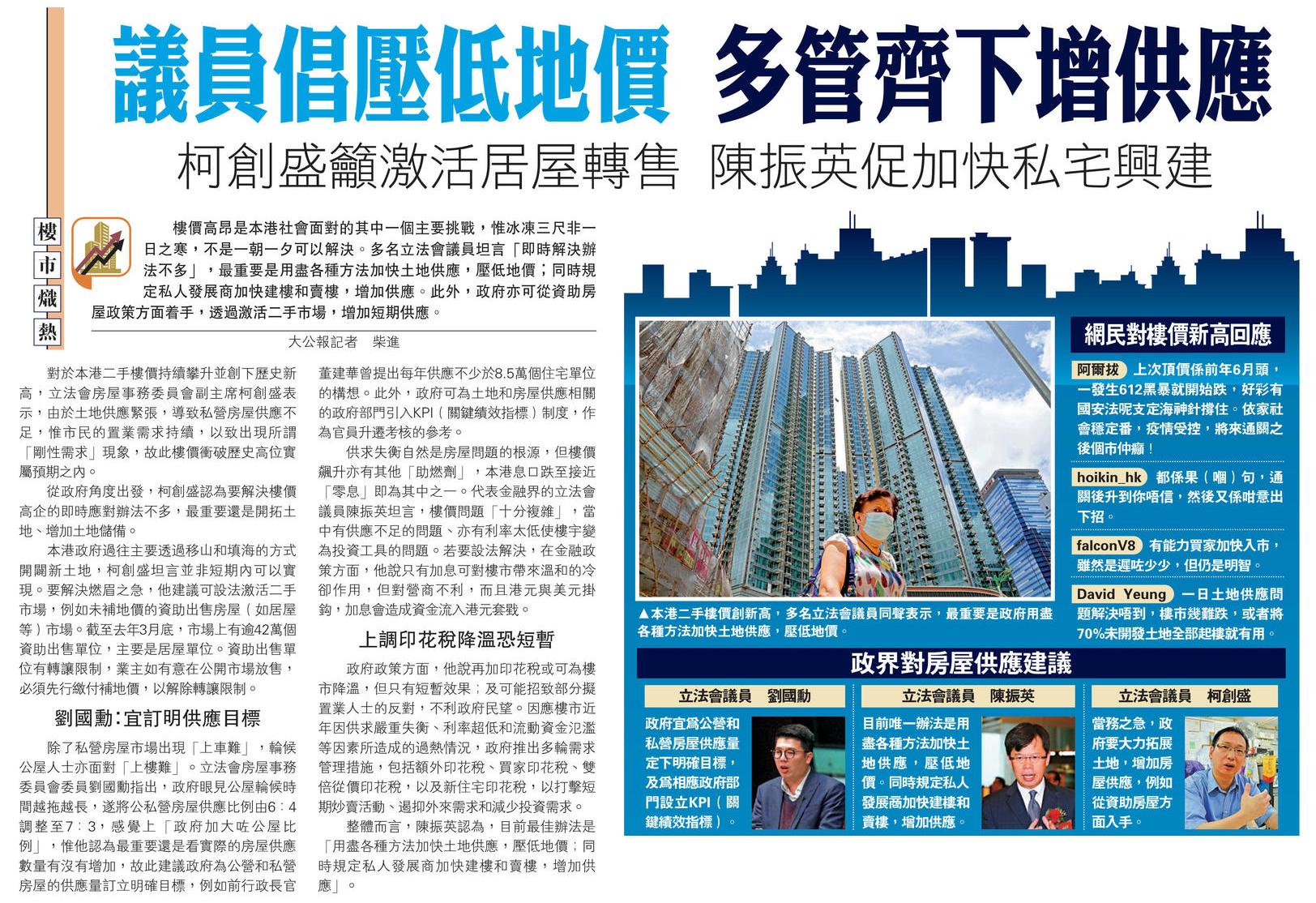 議員倡壓低地價 多管齊下增供應 柯創盛籲激活居屋轉售 陳振英促加快私宅興建