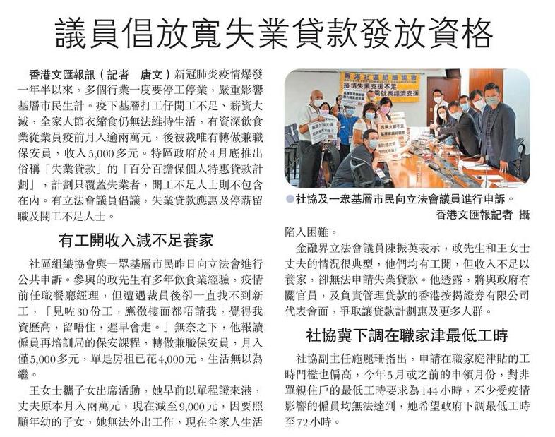 議員倡放寬失業貸款發放資格