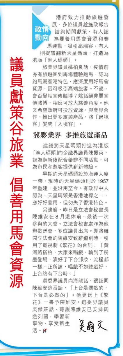 議員獻策谷旅業 倡善用馬會資源