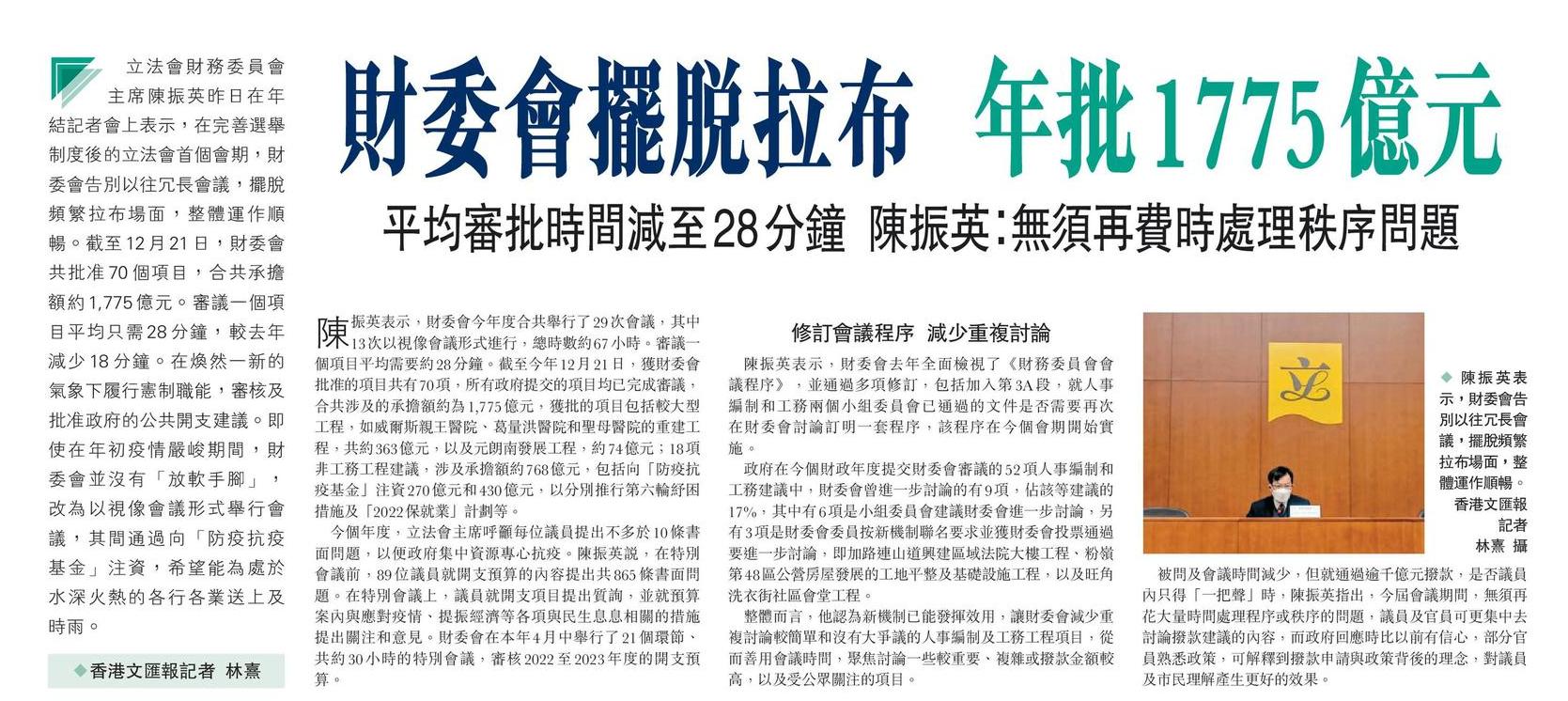 財委會擺脫拉布 年批1775億元 平均審批時間減至28分鐘 陳振英:無須再費時處理秩序問題