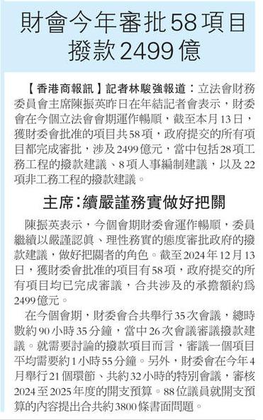 財會今年審批58項目 撥款2499億