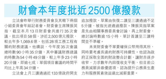 財會本年度批近2500億撥款