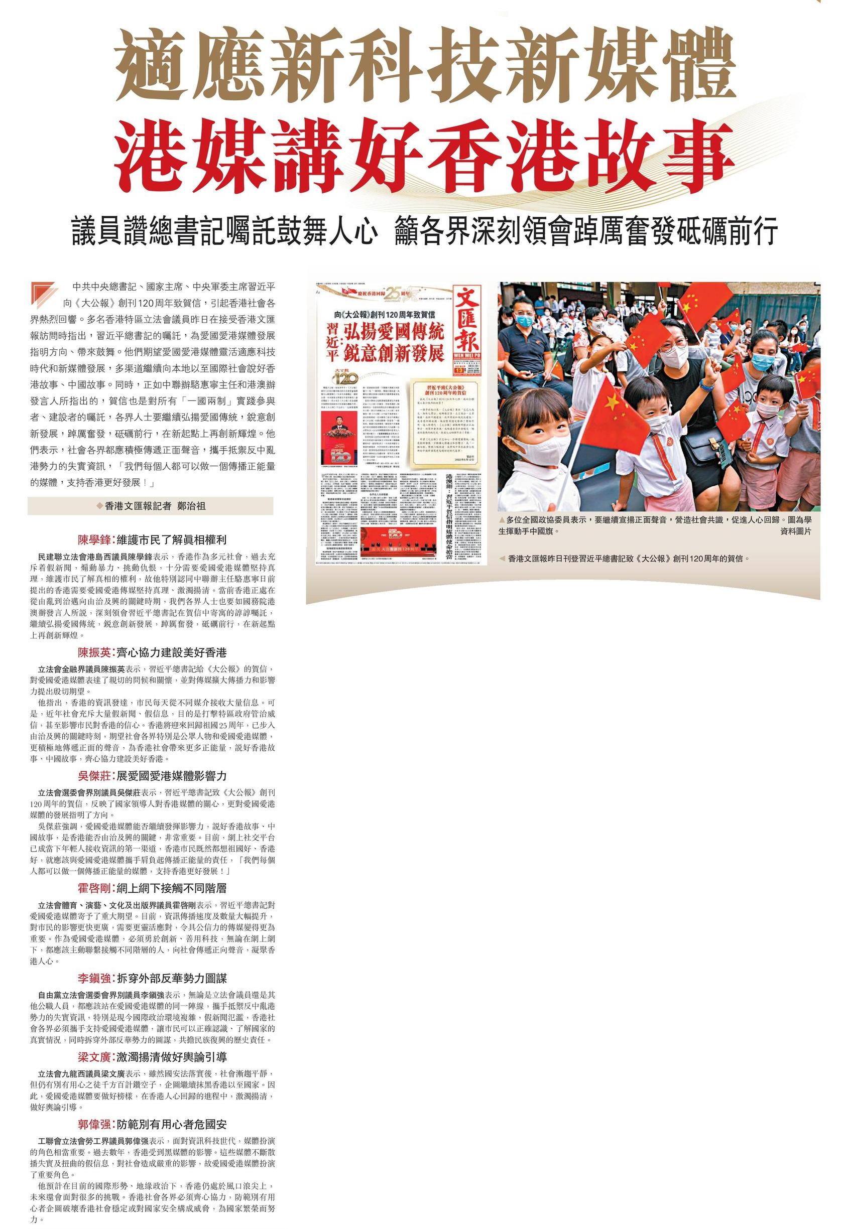 適應新科技新媒體 港媒講好香港故事 議員讚總書記囑託鼓舞人心 籲各界深刻領會踔厲奮發砥礪前行
