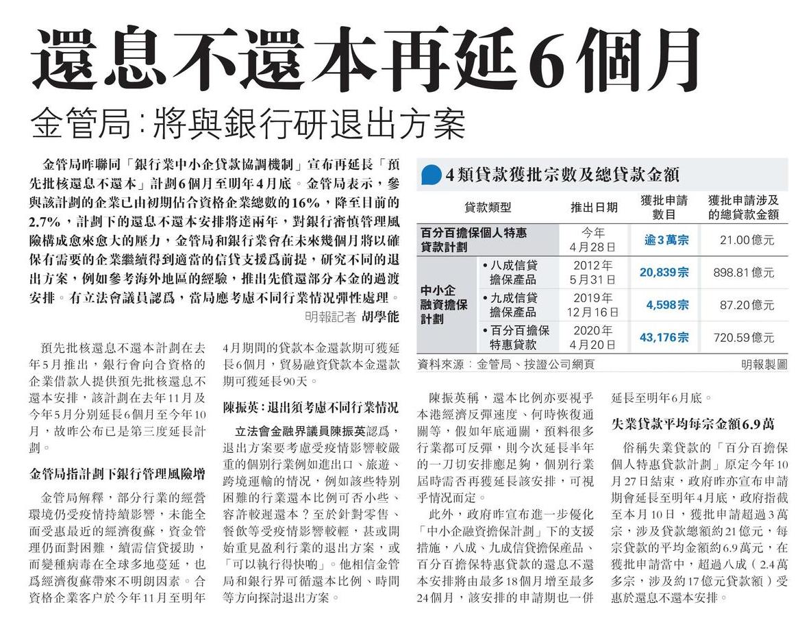 還息不還本再延6個月 金管局:將與銀行研退出方案
