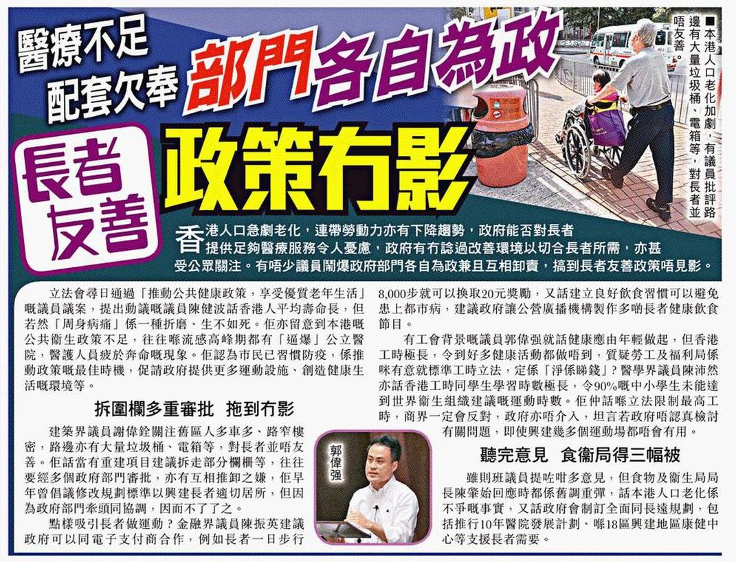 醫療不足 配套欠奉 部門各自為政 長者友善 政策冇影