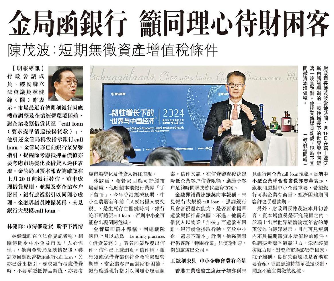 金局函銀行 籲同理心待財困客 陳茂波:短期無徵資產增值稅條件