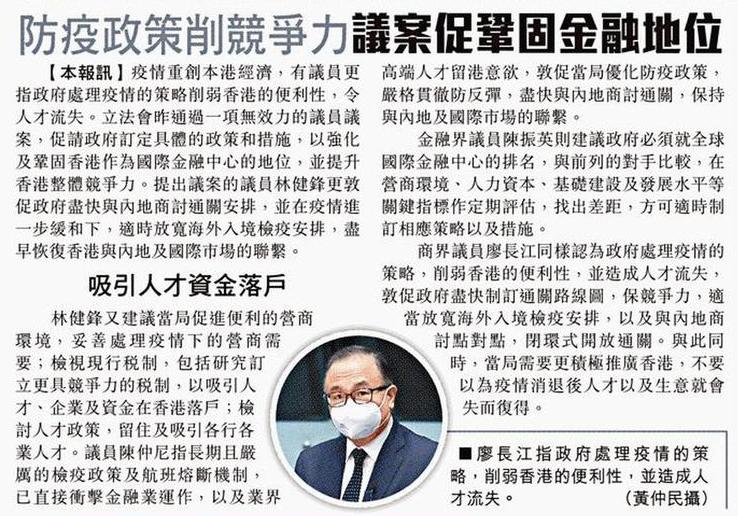 防疫政策削競爭力 議案促鞏固金融地位