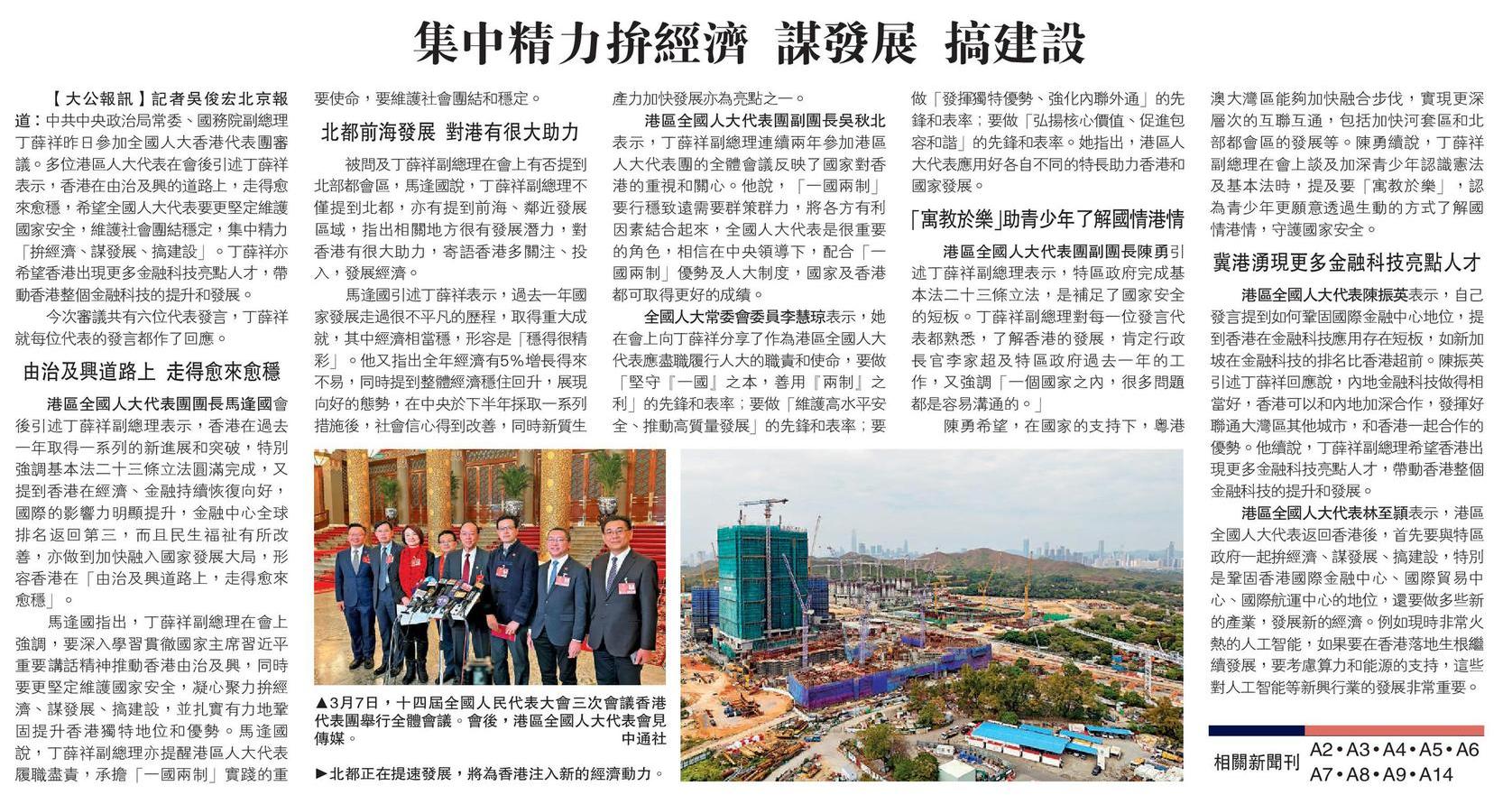 代表引述:丁薛祥寄語港更多投入北都區發展