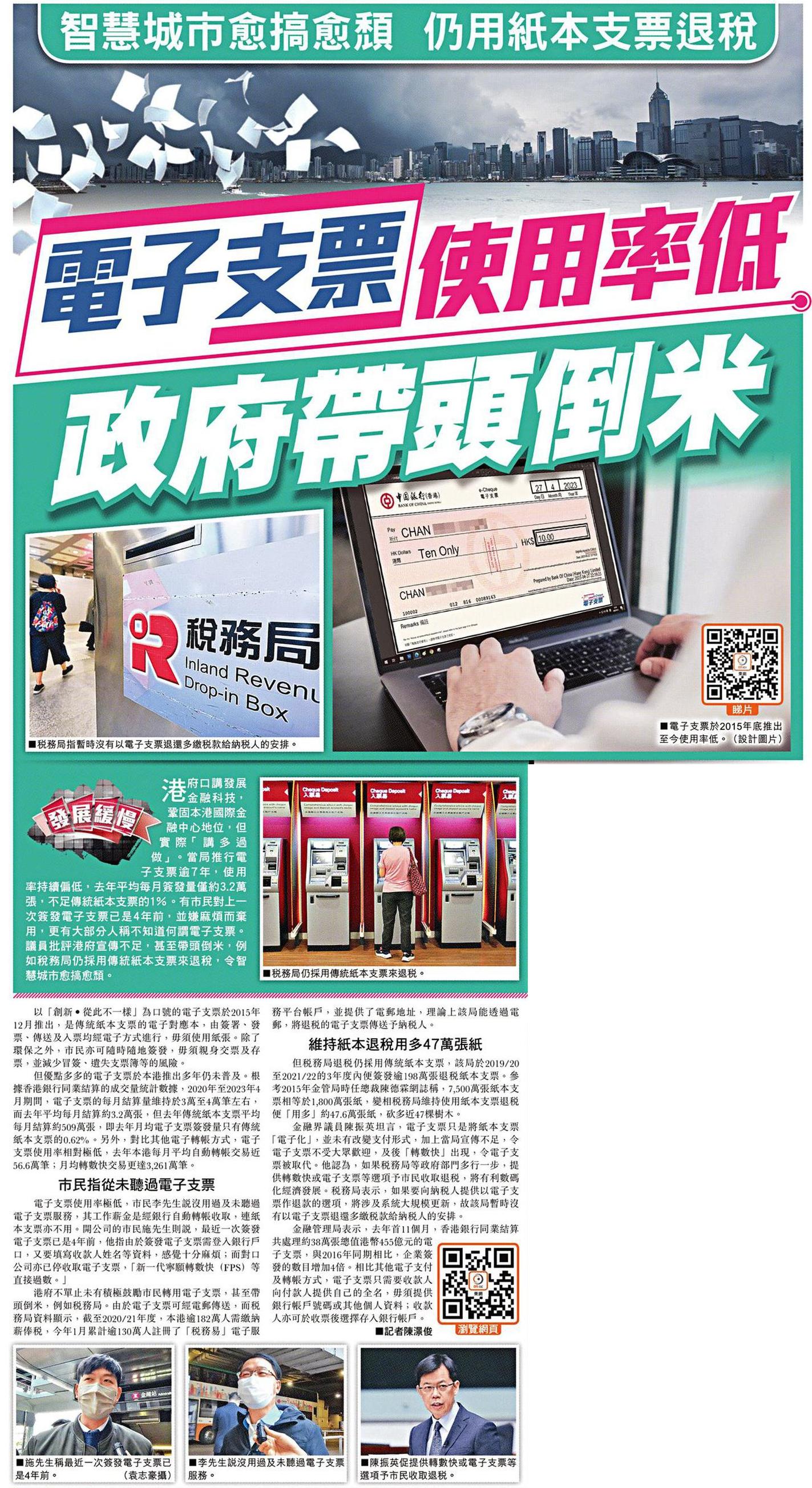電子支票使用率低 政府帶頭倒米 智慧城市愈搞愈頹 仍用紙本支票退稅