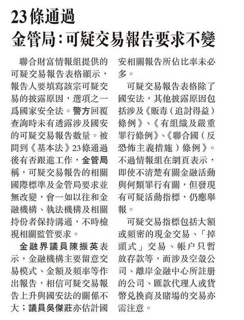 去年9.7萬宗可疑交易上報 13年新高 八成由銀行提出 金管局:因業界採反詐騙措施