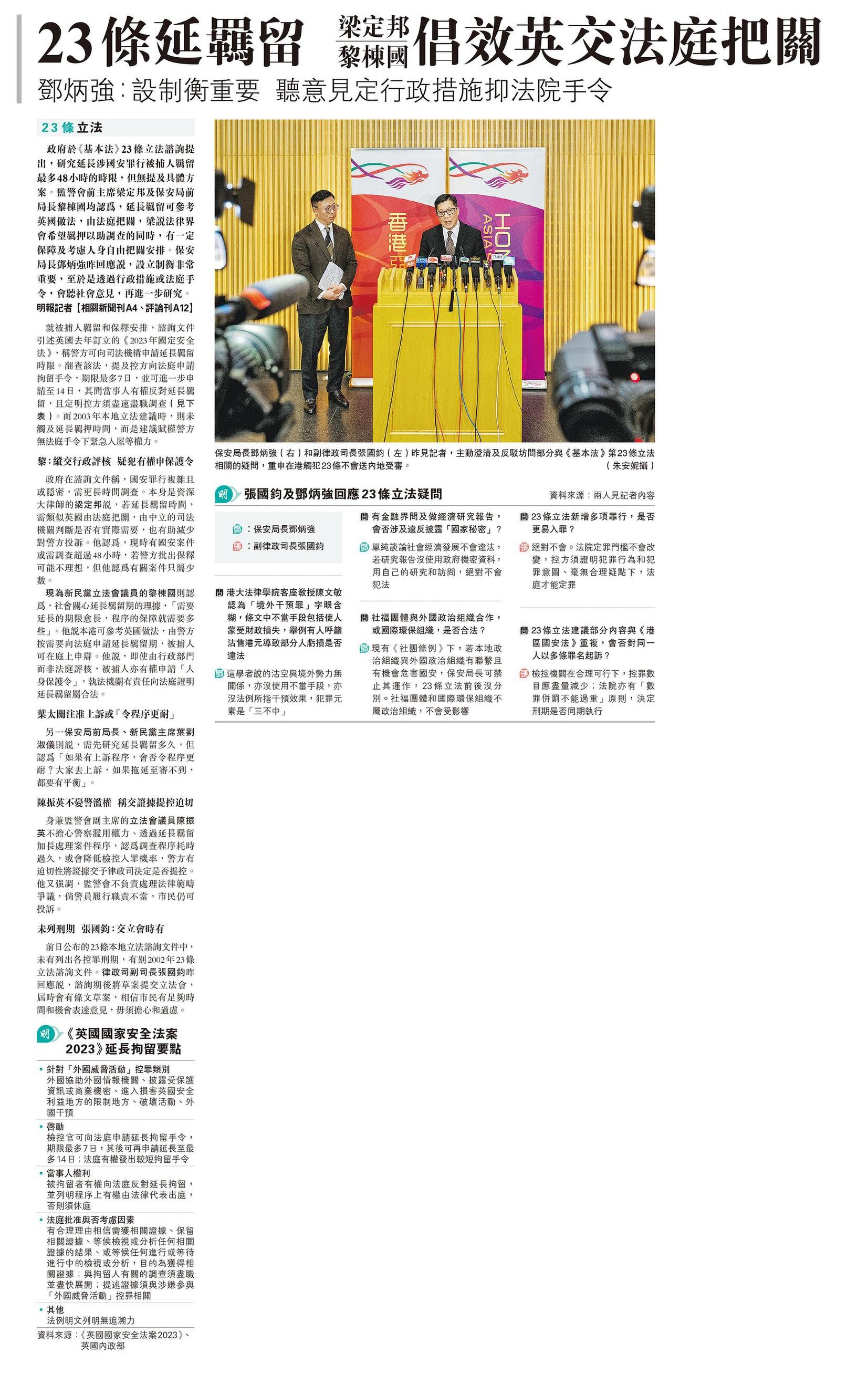 23條延羈留 梁定邦 黎棟國倡效英交法庭把關 鄧炳強:設制衡重要 聽意見定行政措施抑法院手令