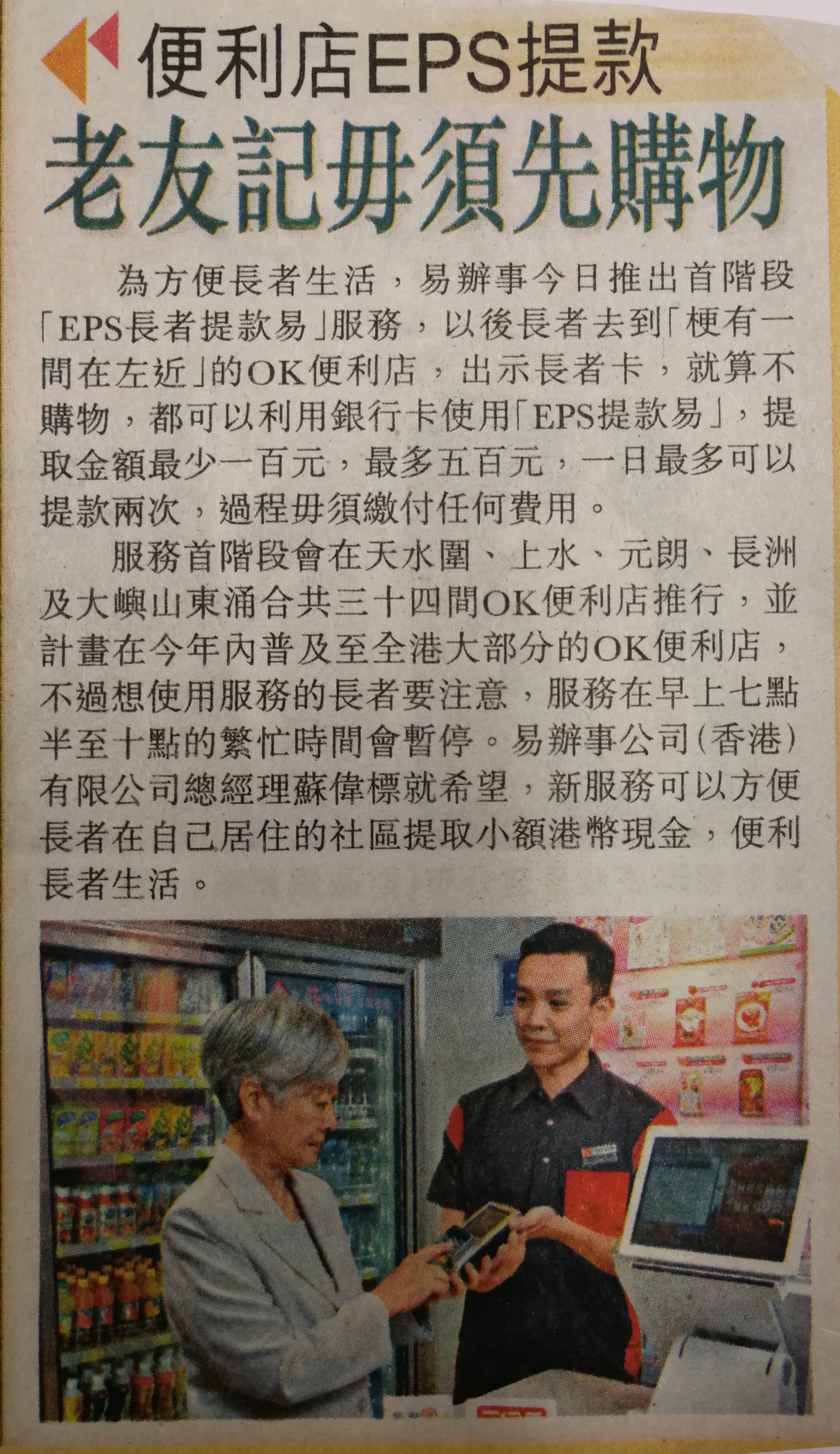 本人倡議的長者 “便利店免購物提款” 開始推出首階段服務