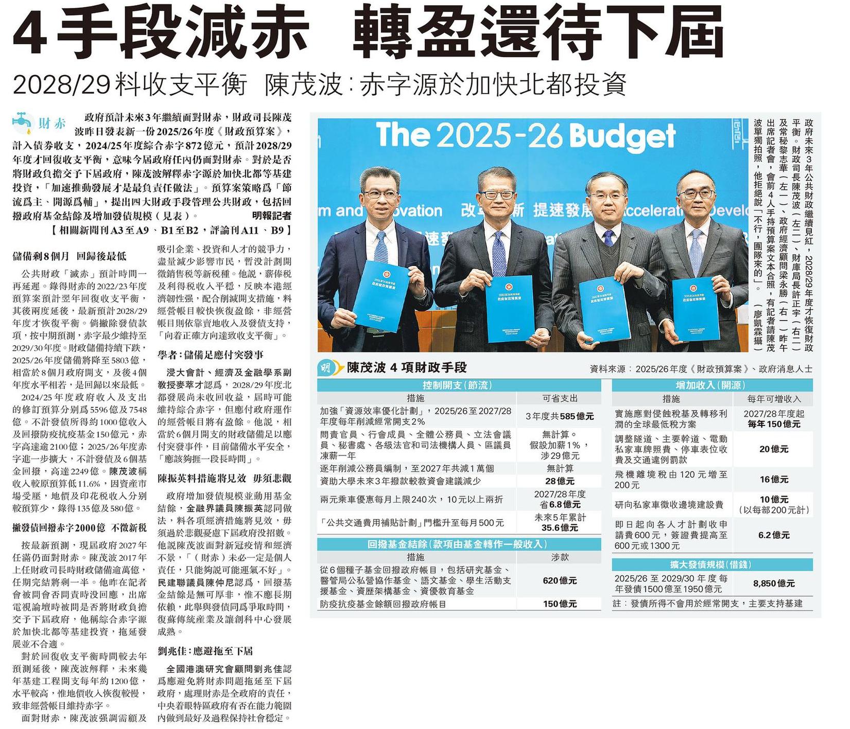 4手段減赤 轉盈還待下屆 202829料收支平衡 陳茂波:赤字源於加快北都投資