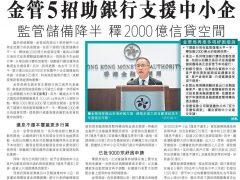 March 17, 2020 April 7, 2020 歡迎金管局將逆週期緩衝資本 (CCyB) 比率由2%下調至1%,讓銀行有更大空間加大力度支持本地經濟;本人將聯同其他立法會議員與金管局、銀行業界代表、部份商會及批發零售界代表會面,進一步商討支援中小企的措施。 2020年3月17日大公報報導