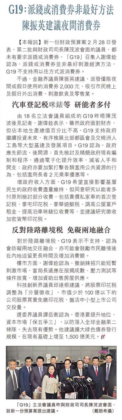 G19:派錢或消費券非最好方法 陳振英建議夜間消費券