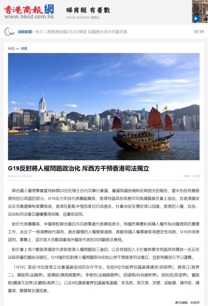 G19反對將人權問題政治化 斥西方干預香港司法獨立