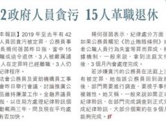 42政府人員貪污 15人革職退休