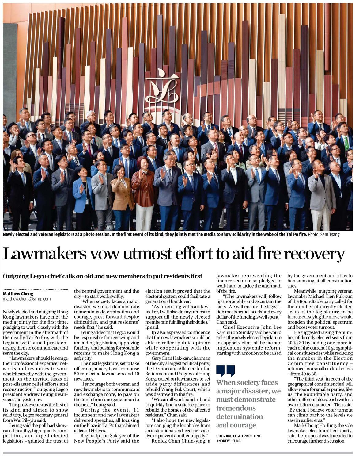Lawmakers vow utmost effort to aid fire recovery December 10, 2025 March 11, 2026 Issued at South China Morning Post on 10 December 2025