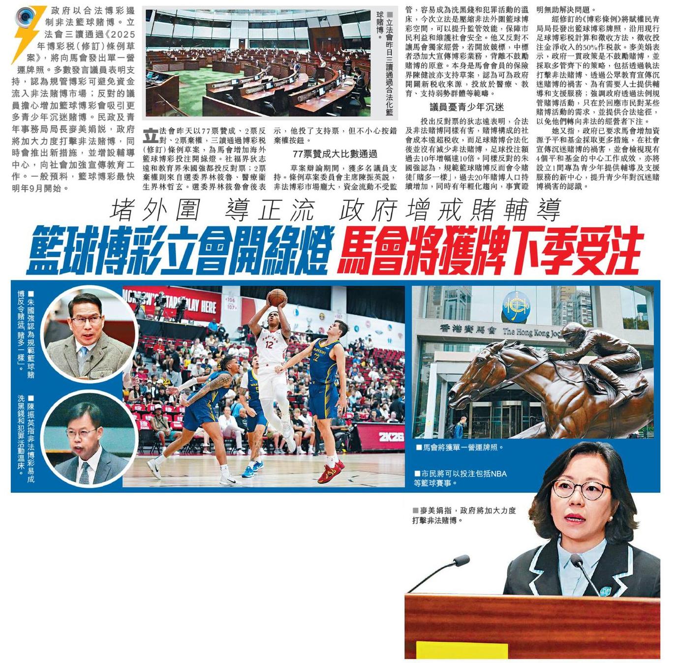 堵外圍 導正流 政府增戒賭輔導 籃球博彩立會開綠燈 馬會將獲牌下季受注