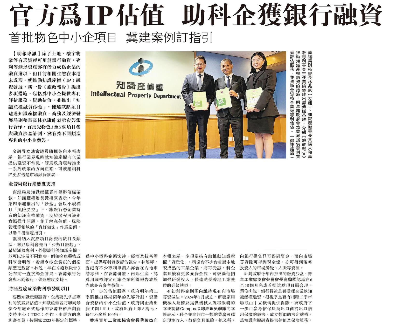 官方為IP估值 助科企獲銀行融資 首批物色中小企項目 冀建案例訂指引