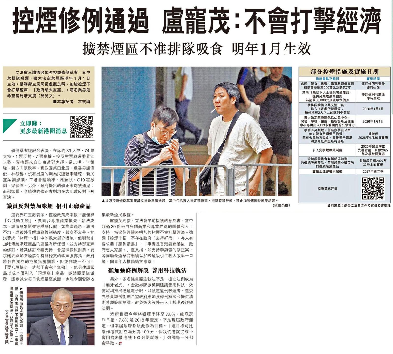 控煙修例通過 盧寵茂:不會打擊經濟